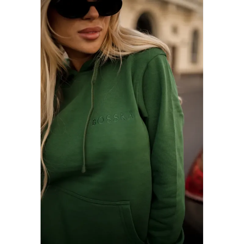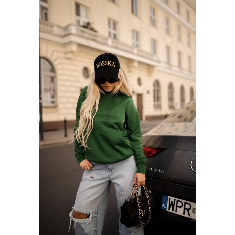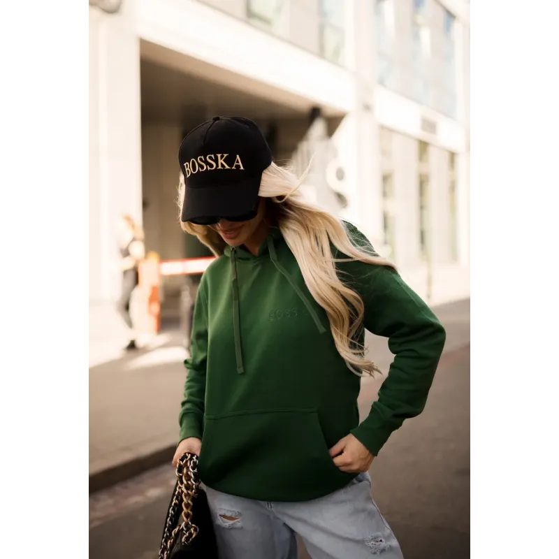 Bluza z kapturem "BOSSKA od urodzenia!" - butelkowa zieleń