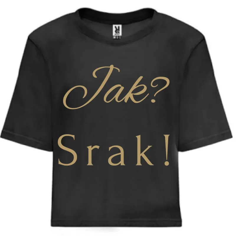 ⚡ Stylowy, złoty nadruk "Jak? Srak!" to kultowe hasło ze szkoleń Moniki Trzaskowskiej – pełne mocy, pewności siebie i bezkompromisowego działania! Jeśli jesteś kobietą, która idzie po swoje i nie uznaje ograniczeń, ta koszulka jest dla Ciebie.
