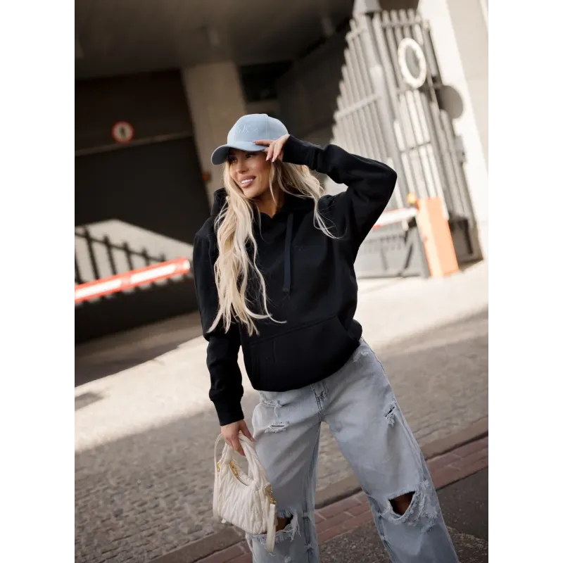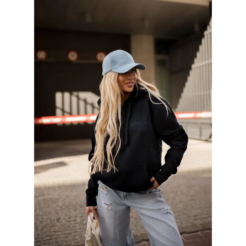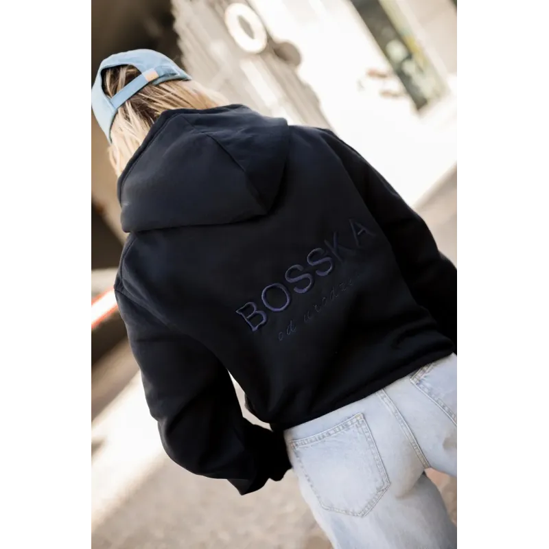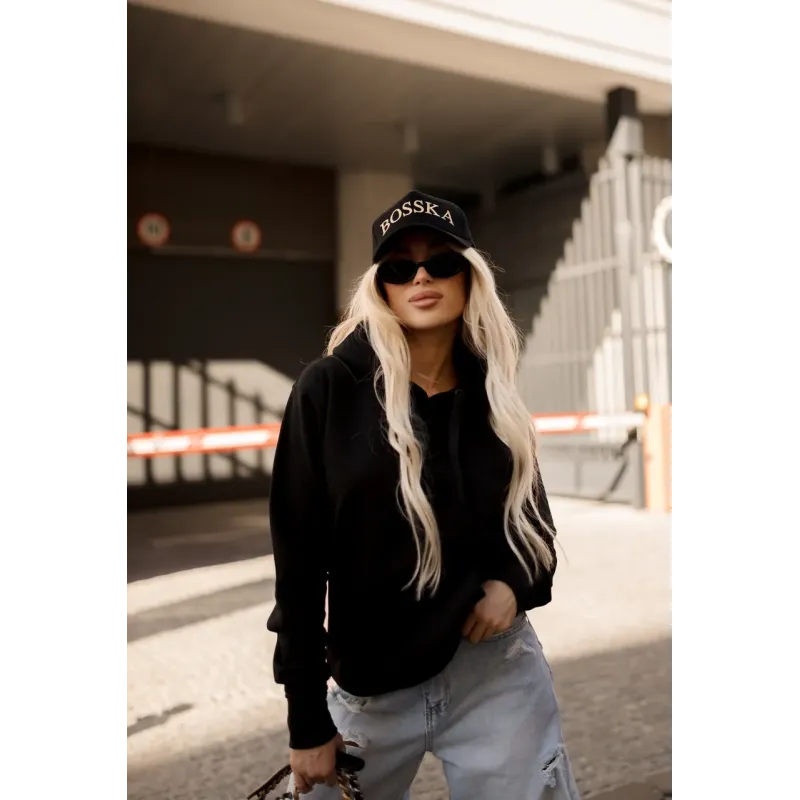 Bluza z kapturem "BOSSKA od urodzenia!" - czarna z czarnym napisem