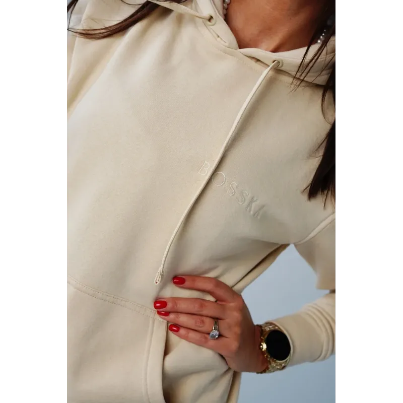 Bluza z kapturem "BOSSKA od urodzenia!" - jasny beż z beżowym haftem