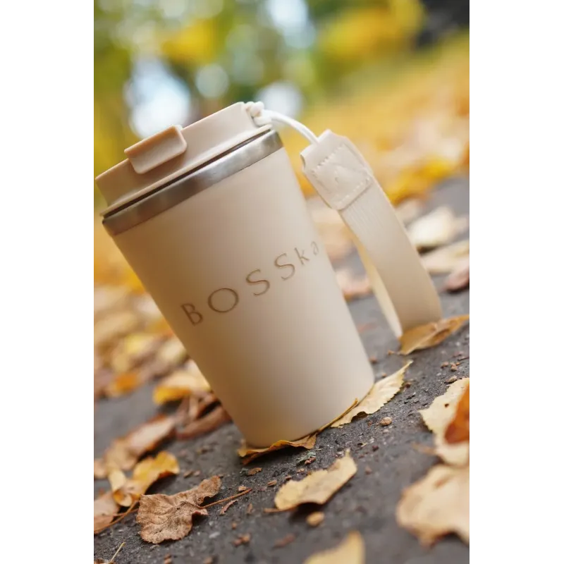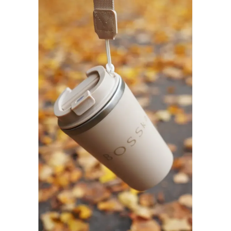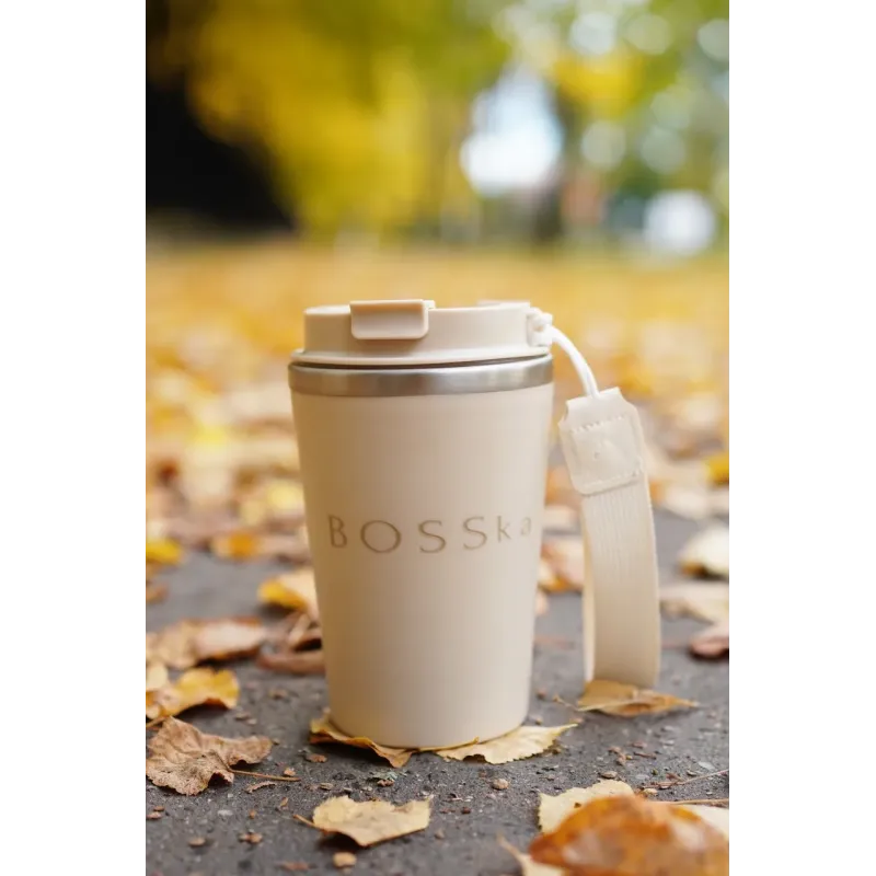 Kubek termiczny BOSSKA w odcieniu delikatnego beżu - funkcjonalny i elegancki, wpisujący się idealnie w styl nowoczesnej kobiety.