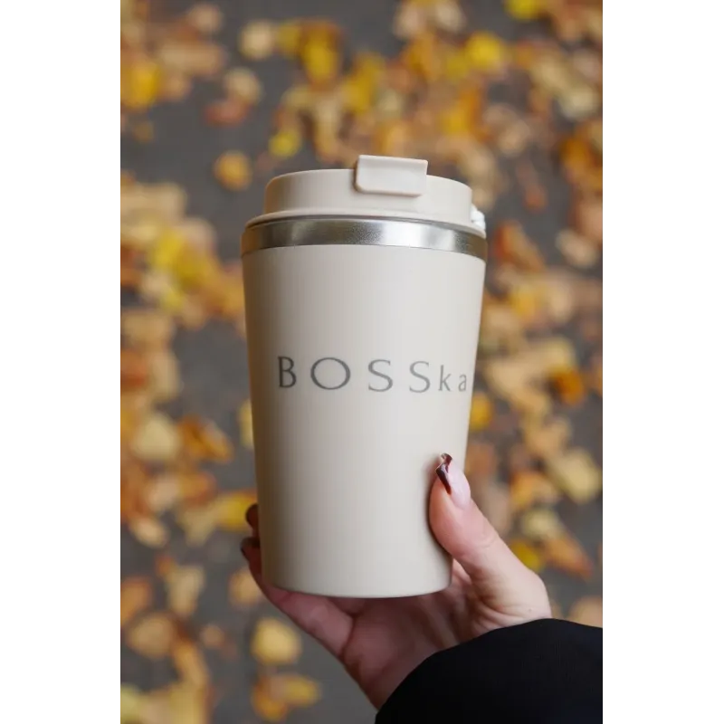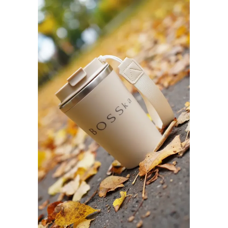 Kubek termiczny BOSSKA w odcieniu delikatnego beżu - funkcjonalny i elegancki, wpisujący się idealnie  w styl nowoczesnej kobiety.
