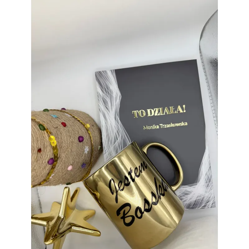 Złoty porcelanowy kubek z grawerem „Jestem BOSSKA” to miły, symboliczny dodatek do zimowych poranków i wieczorów z herbatą czy kawą.